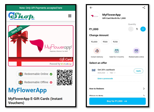 Moreover, it is quite easy to buy MyFlowerApp Gift Cards. Just visit Paytm (Giftcard Section) or click here to visit Adivaha Online Shop and buy Gift Cards for instant delivery of flowers, cakes, chocolates, and other gifts to loved ones.